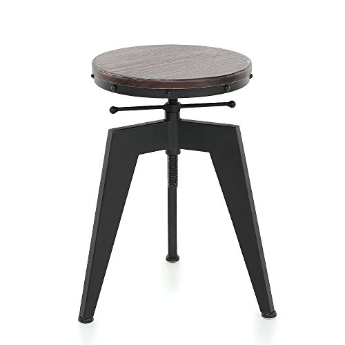 goodhousekeeping IKAYAA Adjustable Height Swivel Kitchen Dining Sitting Chair Bar Stool Industrial Style Natural Pine Wood Top and Steel
